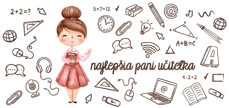 Keramický biely hrnček s postavičkou (4 druhy na výber), školskými motívmi a nápisom "najlepšia pani učiteľka", ideálny ako darček.