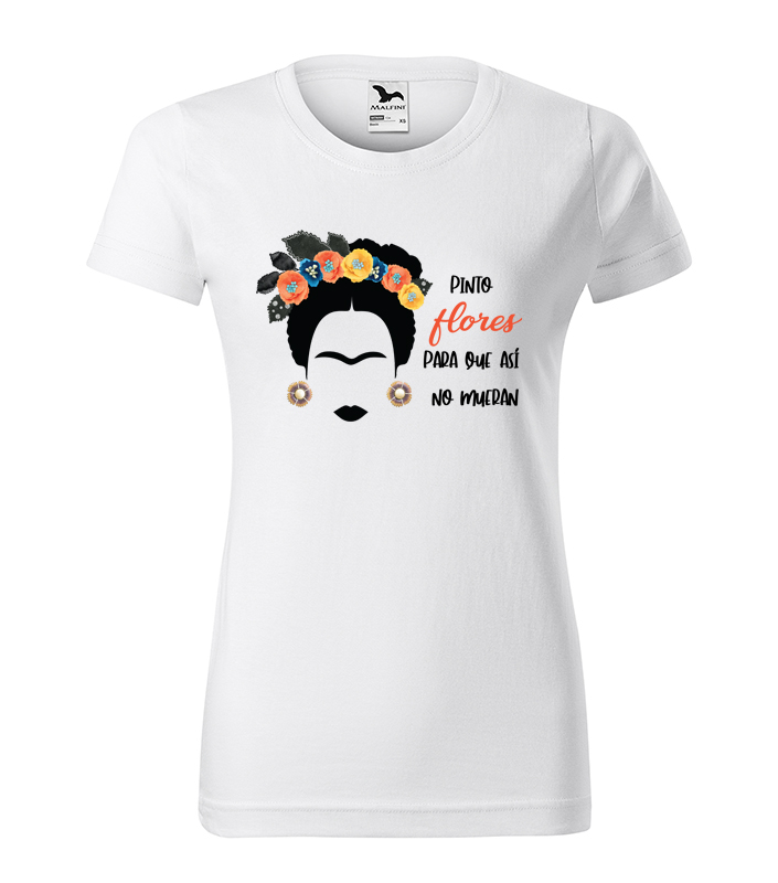 Biele dámske bavlnené tričko s krátkym rukávom s obľúbeným motívom Fridy so slovenským textom alebo španielskym textom. Ak dávate prednosť voľnejšiemu unisex strihu, stačí to pri objednávaní napísať do poznámky. Potlač je vo veľkosti A4. TU nájdete popisky a TU veľkostné tabuľky jednotlivých typov n... celý popis