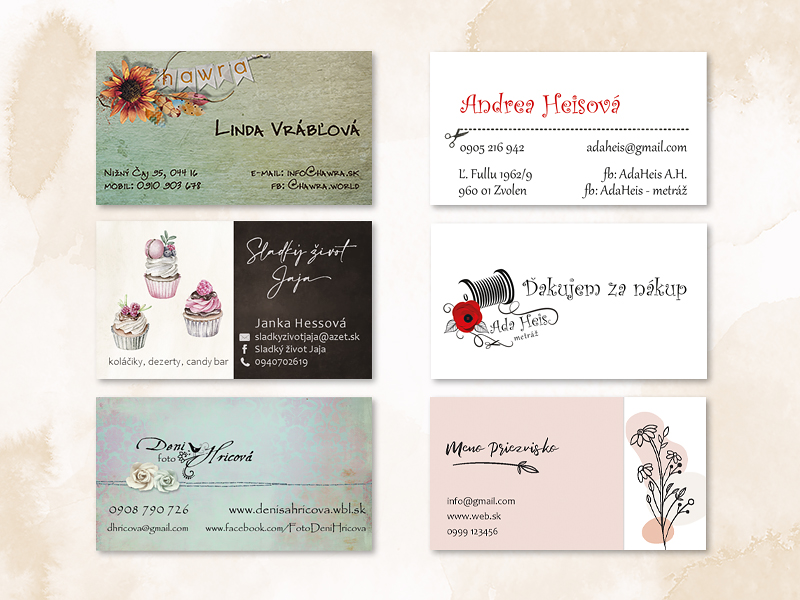 Údaje na vizitku, farebnú kombináciu, či iné predstavy, uveďte pri objednávaní v poznámke alebo mailom.
