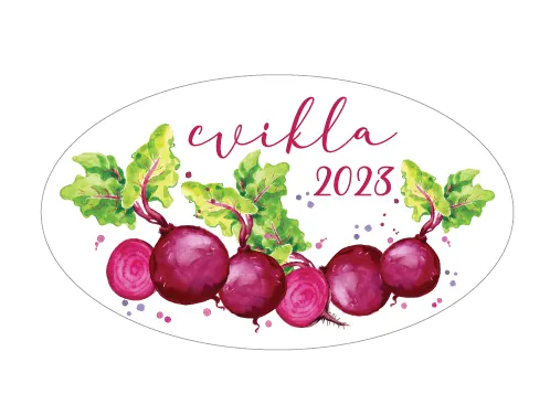 Oválne nálepky na vaše chutné výrobky s aktuálnym rokom, ideálne na menšie zaváraninové poháre/fľaše cca 200-300ml. Grafika vytlačená atramentovou tlačiarňou na obyčajné papierové nálepky, kde je tlač trošku svetlejšia a obyčajnejšia alebo na fotomatné prípadne fotolesklé nálepky, kde sú farby žiari... celý popis