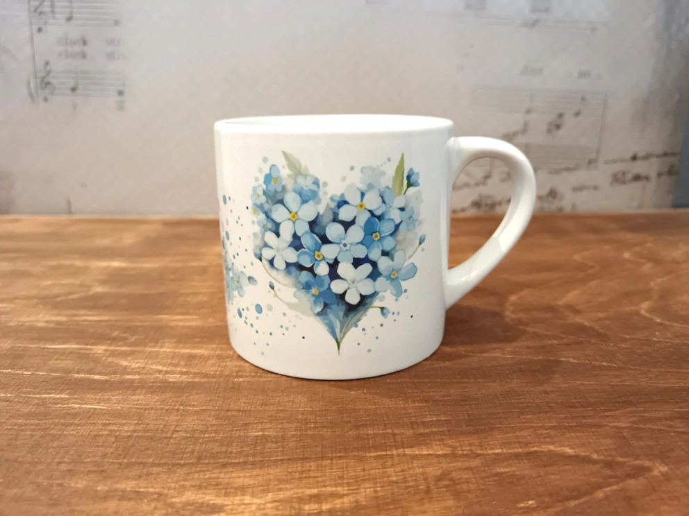 Menší espresso hrnček s objemom 150 ml nezábudkový s nápisom "nezabudni na mňa"