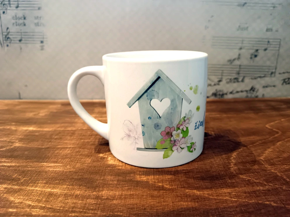Hrnček s ružovým lemom má objem 300ml a espresso hrnček 150ml, oba sú vhodný i do umývačky riadu, no doporučujem ručné umývanie.