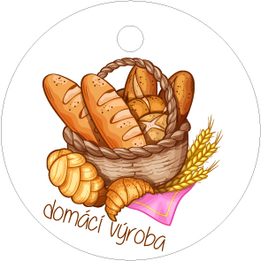 Kartičky s dierkou na zavesenie, potlačené motívom chlebíka, pečiva, kváskovania a lásky k pečeniu na A4 papier s gramážou 250g. Vyrezávané plotrom.