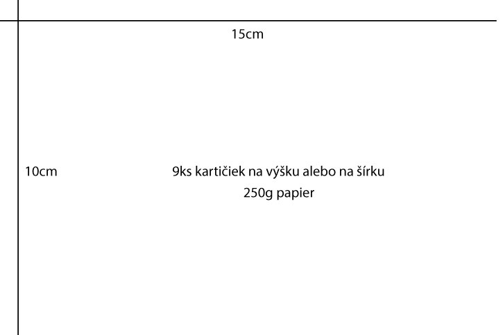 Minimálny odber je 12ks jednostranných kartičiek s rozmerom 10x10cm (cena za kus je 0,30e) alebo 9ks s rozmerom 10x15cm (cena za kus je 0,50e). Ak potrebujete menej kusov, pokojne ma kontaktujte, určite to vyriešime. ;-)