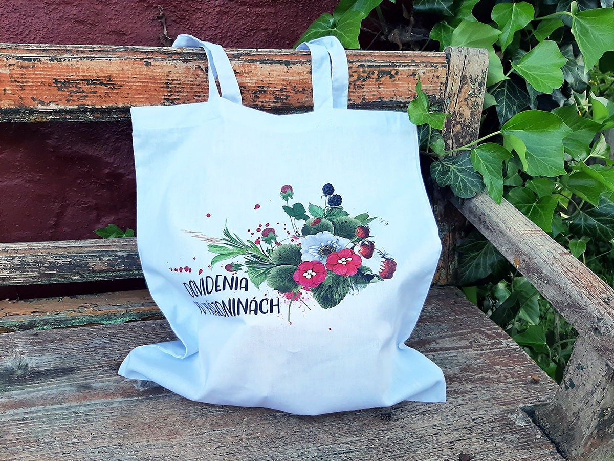 Textilná stredne veľká nákupná taška s potlačou, ideálna ako darček pre pani učiteľku na koniec školského roka.