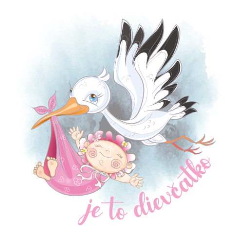 Okrúhle nálepky s motívom bociana s bábätkom a nápisom "je to dievčatko" alebo "je to chlapček".