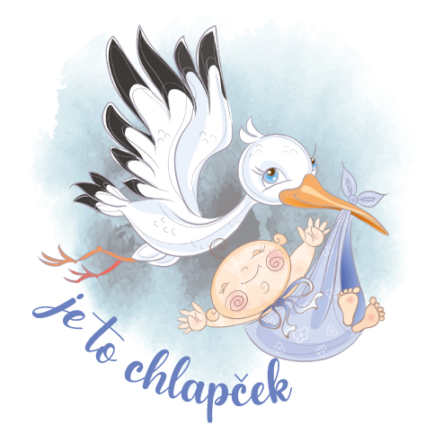 Okrúhle nálepky s motívom bociana s bábätkom a nápisom "je to dievčatko" alebo "je to chlapček".