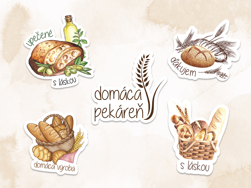 Nálepky s piatimi rôznými motívmi chlebíka, pečiva, kváskovania a lásky k pečeniu. ;-)