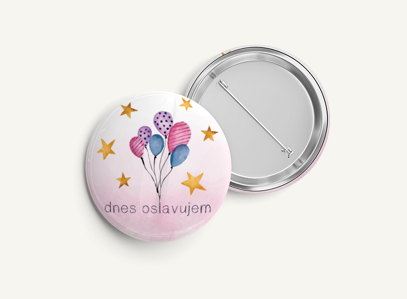 Odznačiky pre oslávencov. Odznak s priemerom 37mm. Na výber sú štyri motívy. balóny torta so srdiečkami muffinka torta s girlandou Grafiku pre odznaky tlačím atramentovou tlačiarňou na fotopapier a chráni ju plastová vrstva. Odznaky sa pripínajú zapínacím špendlíkom. celý popis