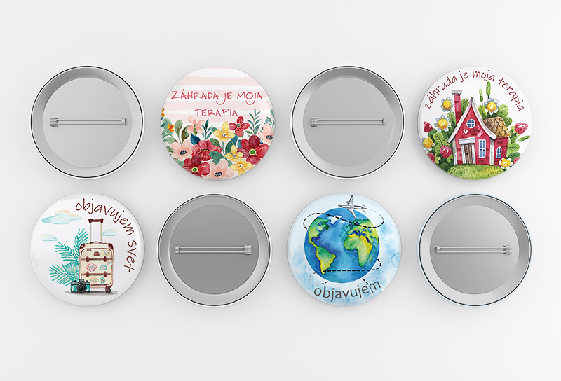Odznak s priemerom 37mm. Na výber sú dva záhradné motívy a dva cestovateľské.