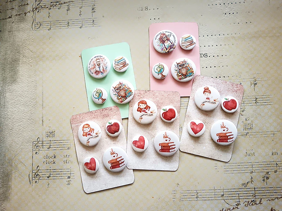 Set štyroch odznačikov pre učiteľov.