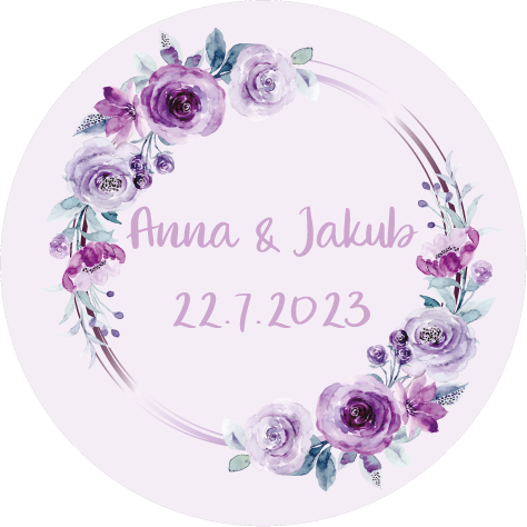 Okrúhle svadobné nálepky s menami snúbencov a dátumom na obálky, krabičky, darčeky...