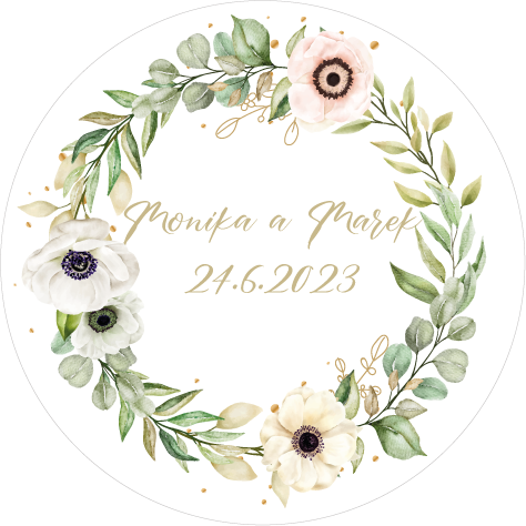 Okrúhle svadobné nálepky s menami snúbencov a dátumom na obálky, krabičky, darčeky... Na výber je zo šiestich motívov. Mená a dátum, prosím uveďte pri objednávaní do poznámky. Grafika vytlačená atramentovou tlačiarňou na papierové nálepky, kde je tlač trošku svetlejšia a obyčajnejšia alebo na fotoma... celý popis