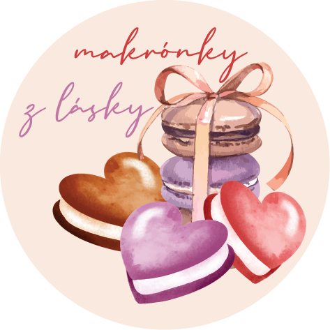 Okrúhle nálepky - valentínske koláčiky - tri motívy s priemerom 4cm s nápisom "s láskou", "z lásky" alebo "makrónky z lásky".