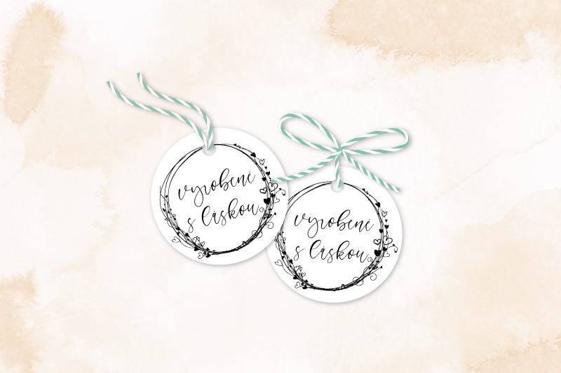 Okrúhle biele alebo kraftové visačky s dierkou na zavesenie, ideálne pre vaše valentínske projekty s nápisom "vyrobené s láskou" na A4 papier s gramážou 250g. Vyrezávané plotrom. Priemer visačky 4cm, dierka 0,40cm. 28ks kartičiek na jednej A4. Visačky sú dodávané bez špagátika. celý popis